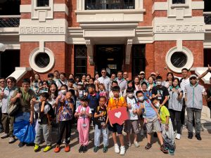 屋宇署總屋宇測量師林肇基(前排右二)及屋宇署首席測量主任馬文玉指參與義工活動的過程,得到心靈上的滿足,獲益良多。圖為與民航處合辦的「航空教育徑」學生參觀活動。