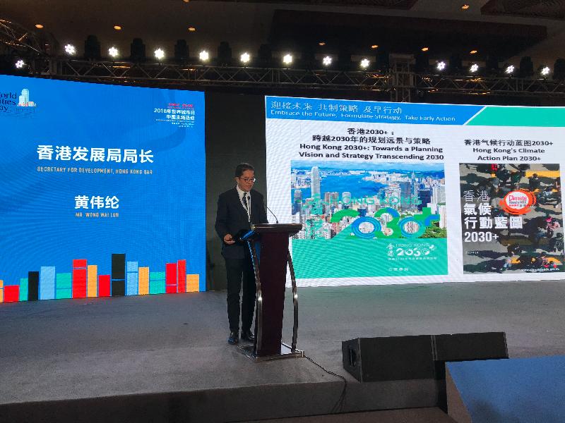 The Secretary for Development, Mr Michael Wong, today (October 31) gave a keynote speech on green living and green cities at the 2018 World Cities Day Forum in Xuzhou, Jiangsu Province.
