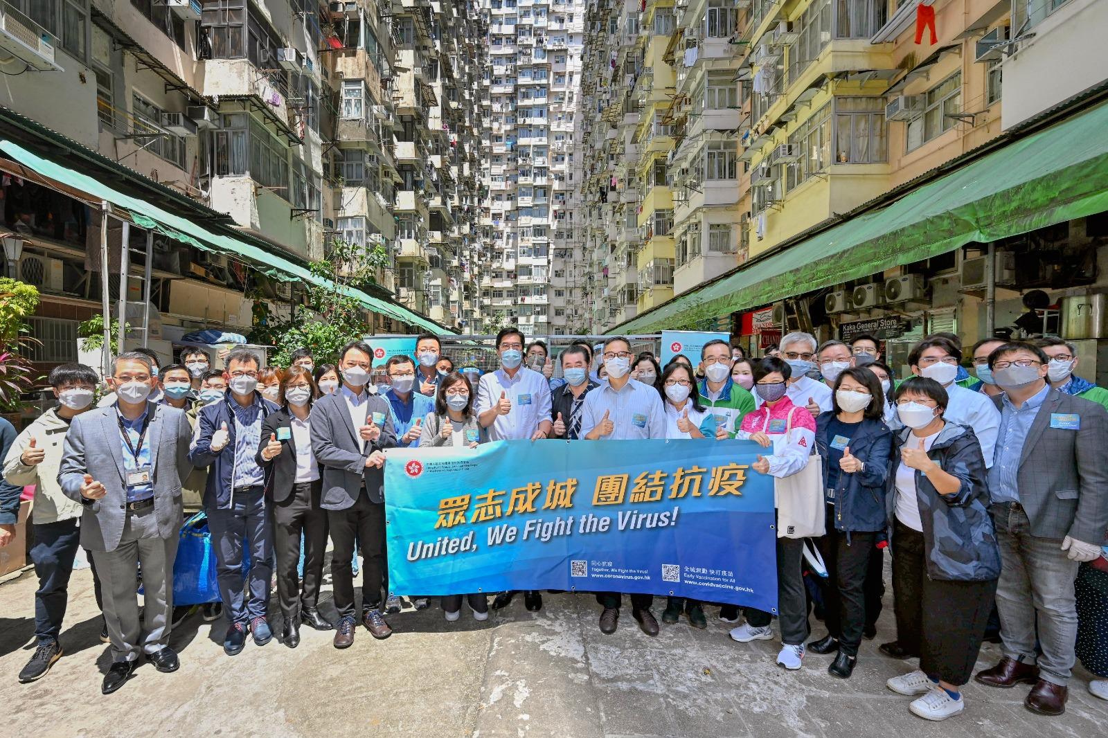 Accompanied by the District Officer (Eastern), Mr Simon Chan, Mr Wong, together with the Permanent Secretary for Development (Planning and Lands), Ms Bernadette Linn; the Permanent Secretary for Development (Works), Mr Ricky Lau; the Under Secretary for Development, Mr Liu Chun-san; the nine Heads of Department under the DEVB; and other colleagues of the DEVB and its departments, distributed to households the anti-epidemic service bags, each containing surgical masks, proprietary Chinese medicines, rapid antigen test (RAT) kits, an information booklet on epidemic prevention and a message card.