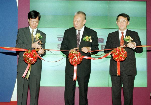 Photo:The Chief Executive, Mr Tung Chee Hwa, officiated at the opening ceremony of the exhibition on "Sustainable Development in Hong Kong for the 21st Century" at Pacific Place. Picture shows Mr Tung joining the officiating guests at the ribbon-cutting ceremony to mark the opening of the exhibition.
