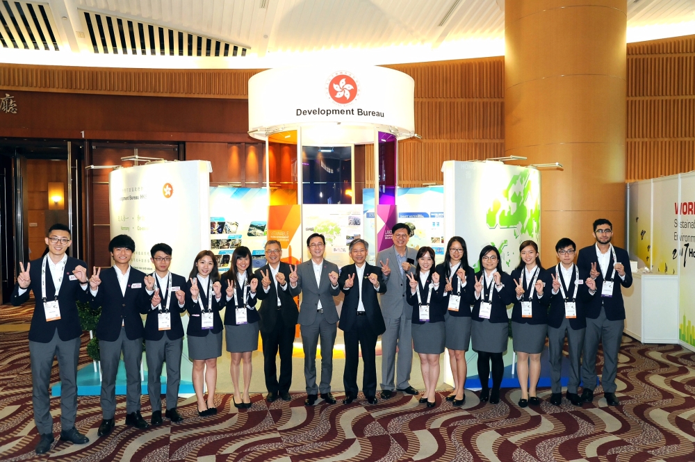 The SDEV, Mr Eric MA (seventh left), and the PS(W), Mr HON Chi-keung (eighth left), thank the young ambassadors for their dedicated efforts in the past couple of days.