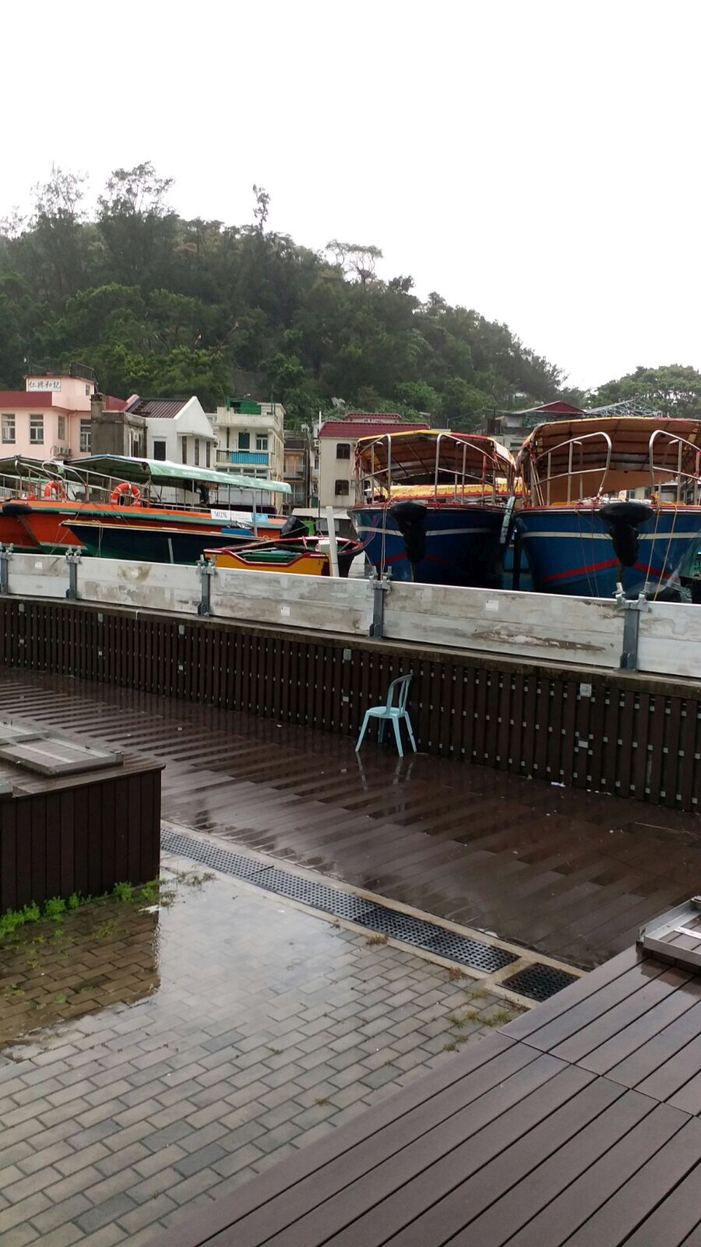 Water levels rise considerably during the typhoon.  The flood barriers shown in the photo have played a role in flood prevention.