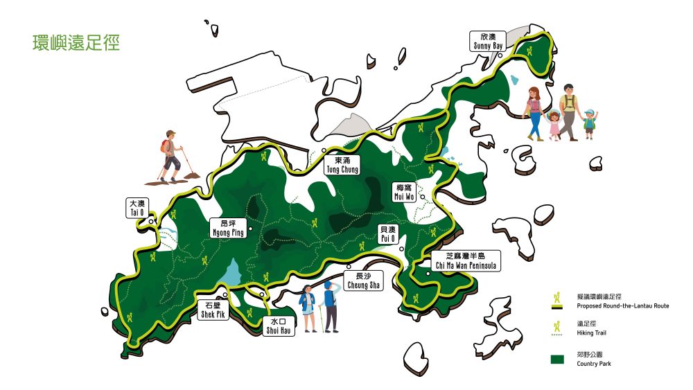 The SLO plans to integrate the existing and to-be-built hiking trails in Lantau into a Round-the-Lantau Route with a total length of about 100 kilometres.