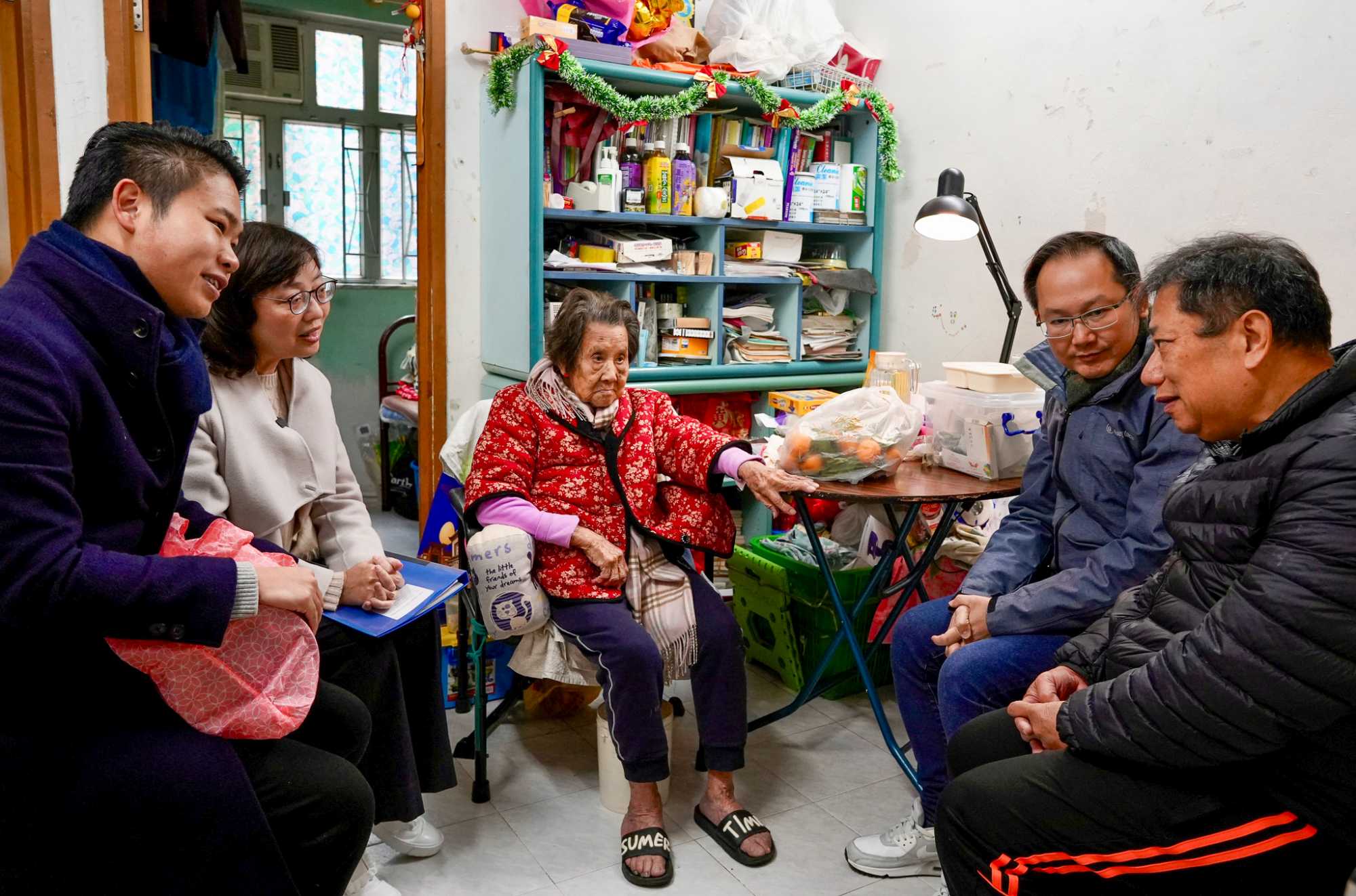 | Mr TANG (first right), owner of an old building in Sai Ying Pun, believes that buildings that are too old will lose their value and therefore supports expediting redevelopment of old districts by lowering the compulsory sale application thresholds. |