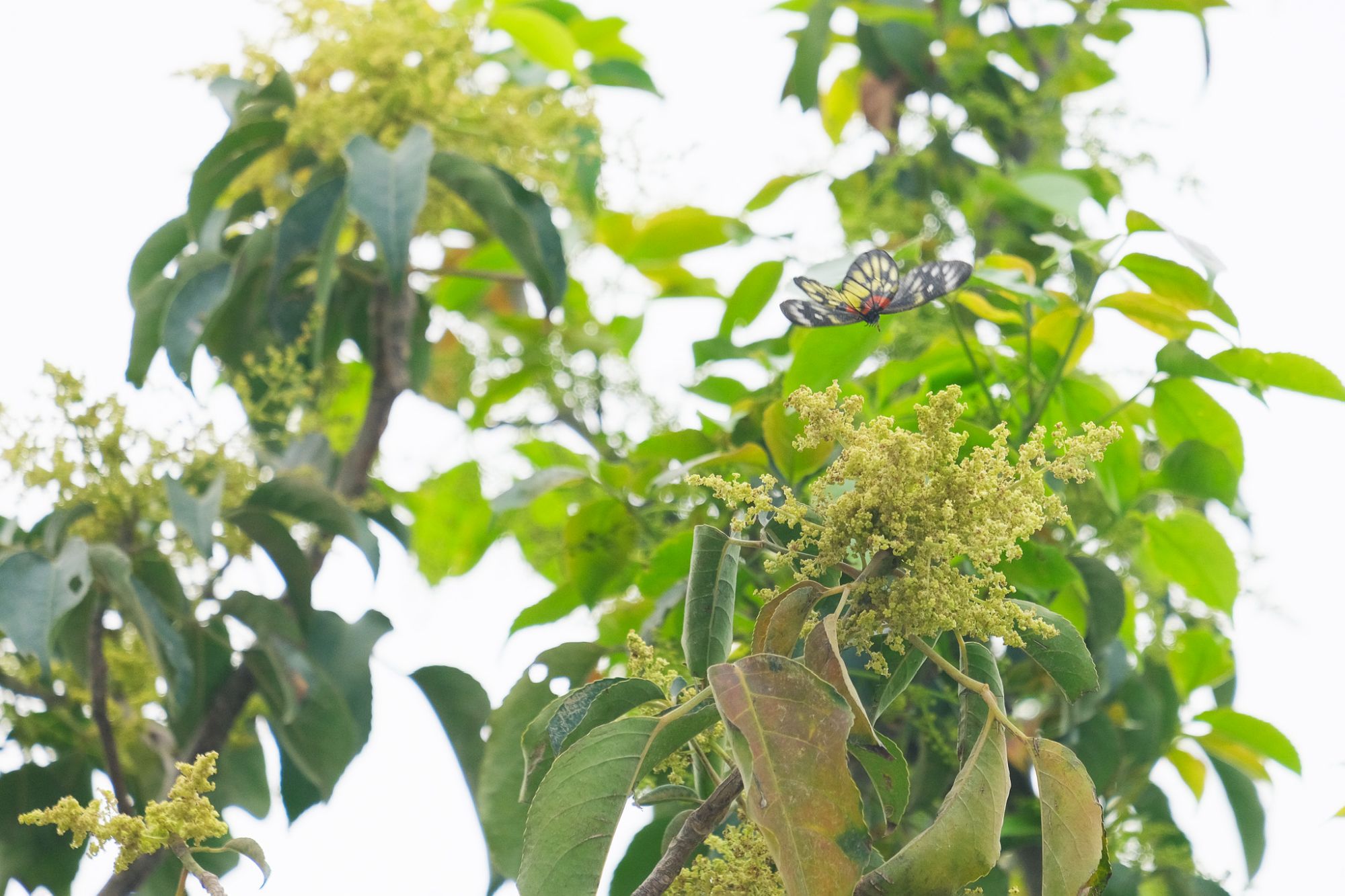秋楓樹和蒲桃樹在春季和初夏,開了大量米白色的花朵,吸引了蝴蝶和蜜蜂採蜜。