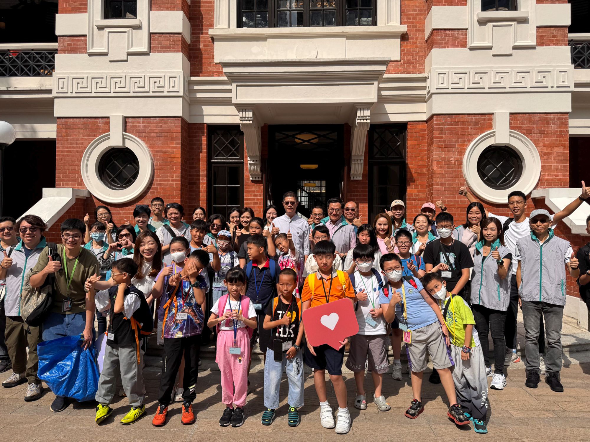 地政總署高級產業測量師梁顯達(左一)表示,部門舉辦的義工活動範疇廣泛。圖為地政總署義工隊參與的「大館文化藝術導賞遊」。