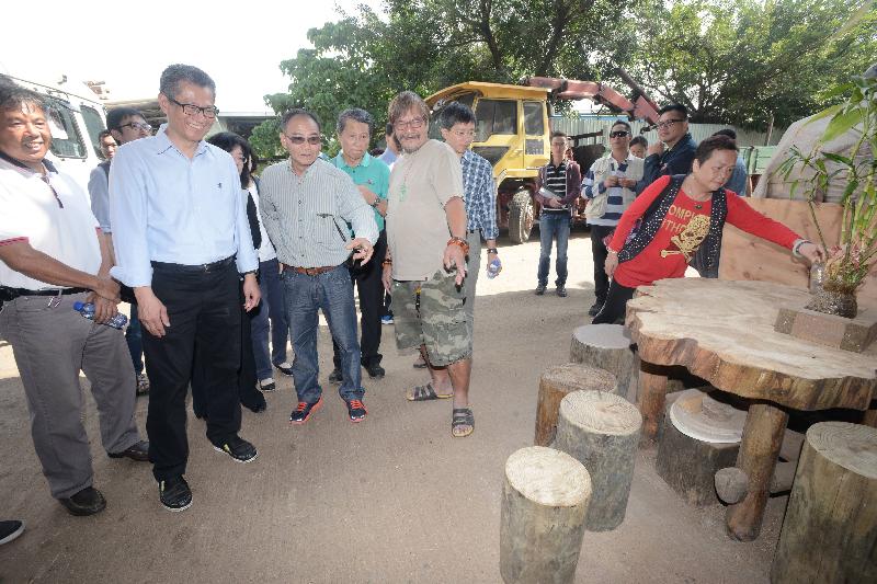 Mr Chan (second left) visits a sawmill in Ma Tso Lung..