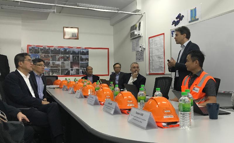 | The Secretary for Development, Mr Michael Wong (first left), and the Permanent Secretary for Development (Works), Mr Lam Sai-hung (second left), today (January 14) visited a private high-rise development project adopting the modular integrated construction method. They were briefed on the project design, construction process, and in particular on the experience of transportation, lifting and installation of large modular units in the busy city centre. |
