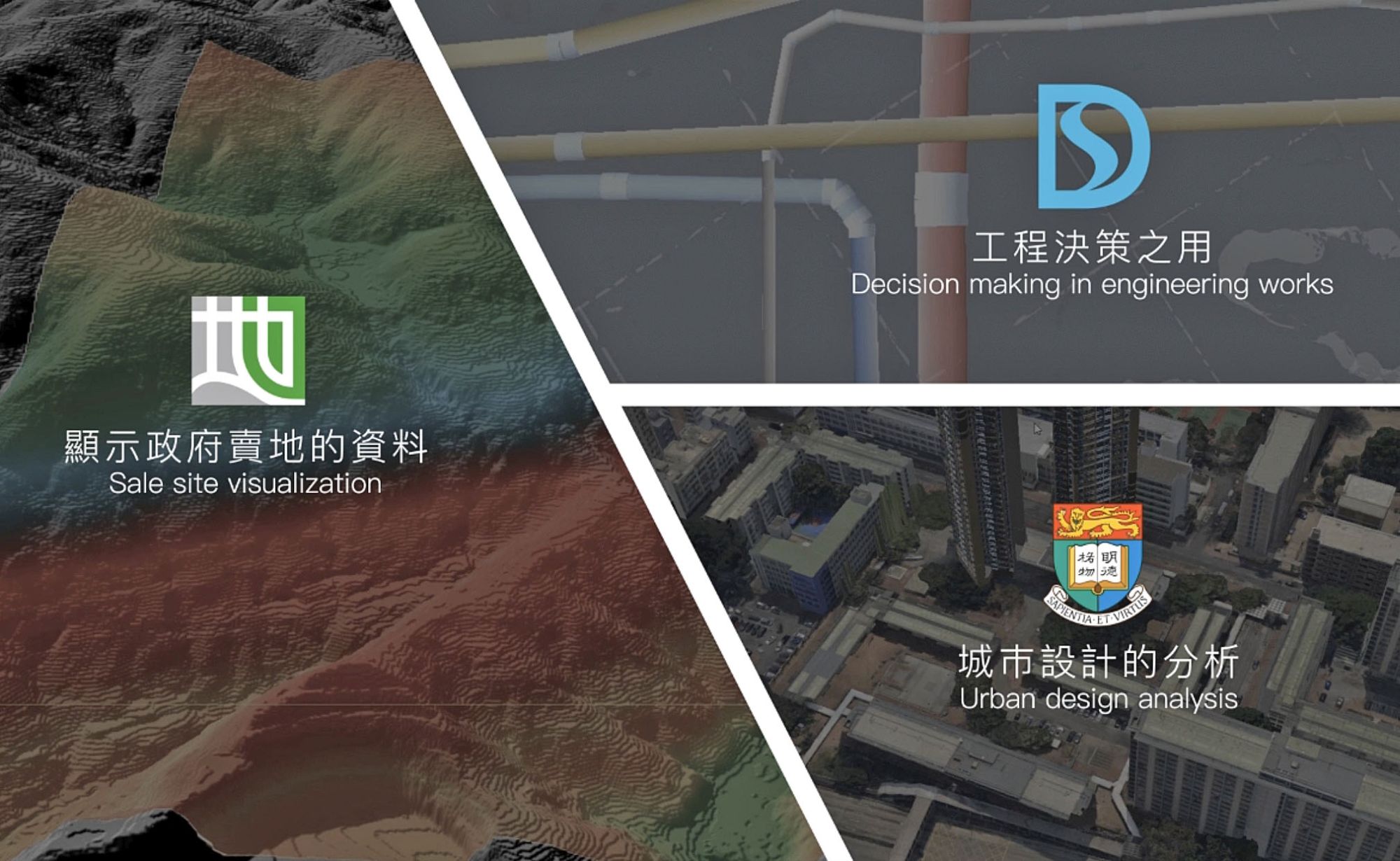 可视化三维地图可配合其他地理空间数据,如不同政府部门的信息,以支持城市规划、土地管理、工程发展、其他技术评估等。