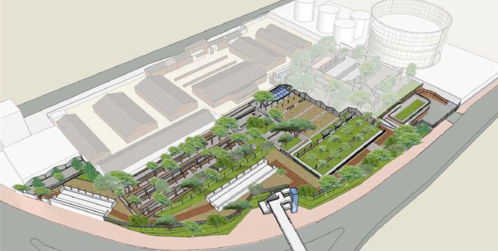 「牛棚」後方正進行活化工程,計劃發展為「牛棚藝術公園」,預計今年年中可開放給市民享用。圖為後方用地的構想圖。