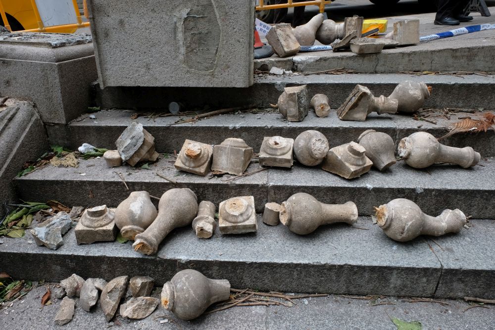 都爹利街石階在超強颱風吹襲期間受到嚴重破壞,風暴過後,古蹟辦撿到的石階殘件達200多件。
