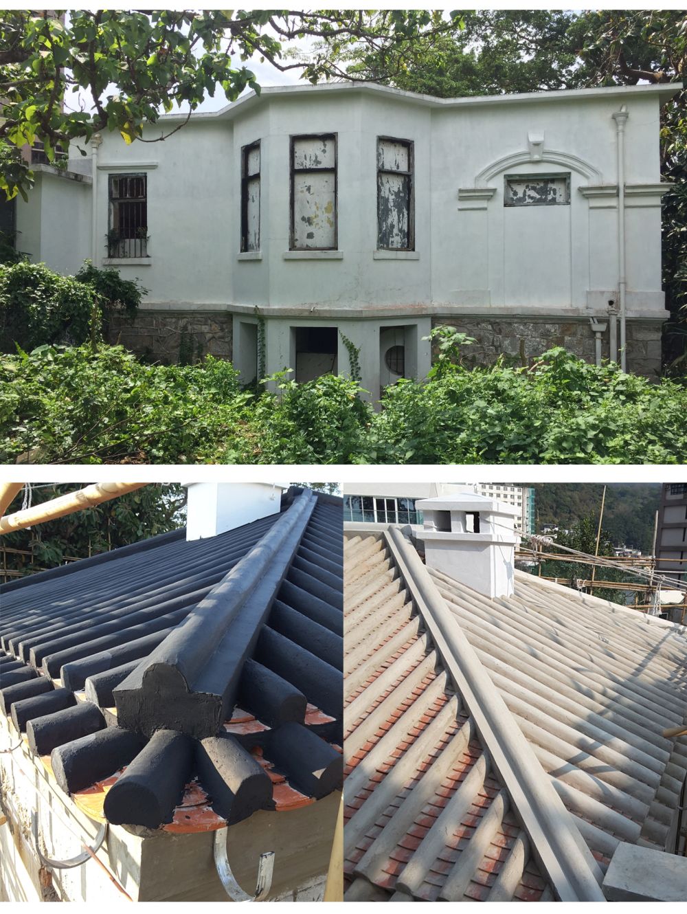 主樓的屋頂過去曾被改動,由原本的斜屋頂改為平頂(上圖),今次的修復工程會盡力把它還原(下圖)。