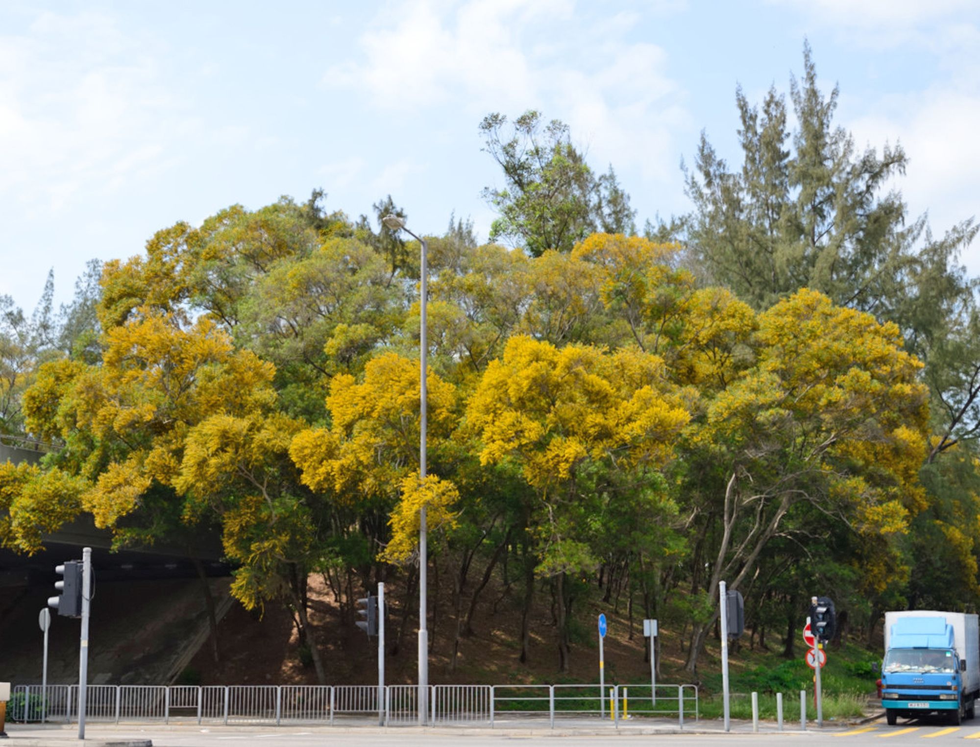 香港在早期植林時,為了防止水土流失,引入了一些外來樹木物種,例如圖中的台灣相思。