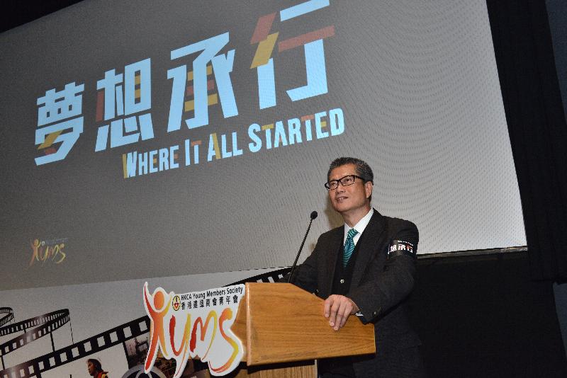 發展局局長陳茂波今日(十二月十七日)在香港建造商會青年會「夢想承行」微電影發布會上致辭。