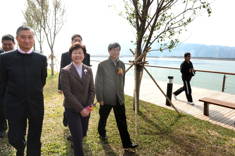 發展局局長林鄭月娥今日(一月十六日)漫步於觀塘海濱花園第一期。