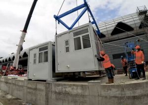 启德社区隔离设施的规模较大,将提供约3 000个房间,楼高四层,设有升降机,其他辅助设施包括楼梯、走廊、屋顶等,均以预制组件形式制造,然后运往工地装嵌。建筑署工程技术秘书罗美斯介绍说,现时启德部分设施已建至第4层,并陆续进行机电设施的接驳和验收工序。设施将于5月至6月分两期完成。建造团队希望争取早日完工,以提升香港抗疫和隔离方面的能力。