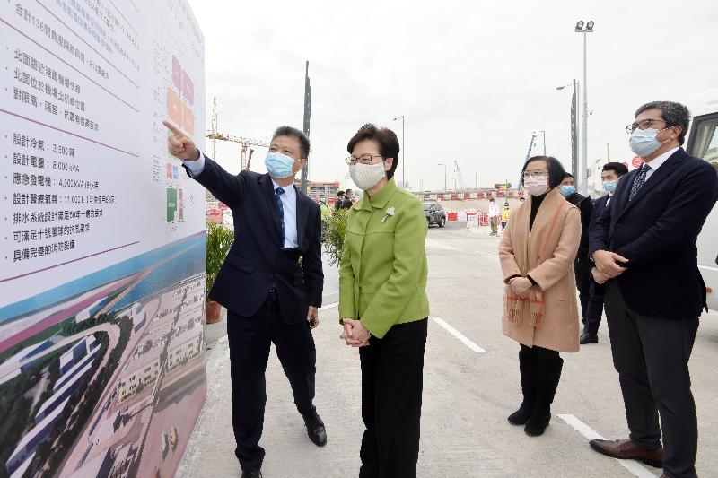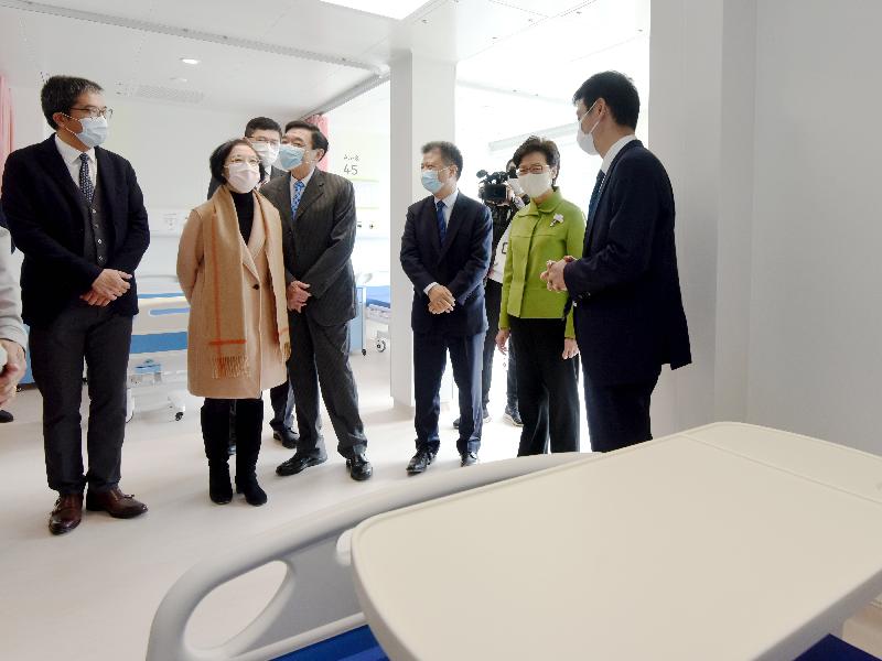林郑月娥在发展局局长黄伟纶、食物及卫生局局长陈肇始教授、发展局常任秘书长(工务)林世雄、医院管理局主席范鸿龄和建筑署署长何永贤陪同下,联同广东省省长马兴瑞、深圳市委书记王伟中、国务院港澳事务办公室副主任黄柳权和中国建筑国际集团董事长颜建国为工程项目主持揭牌仪式。