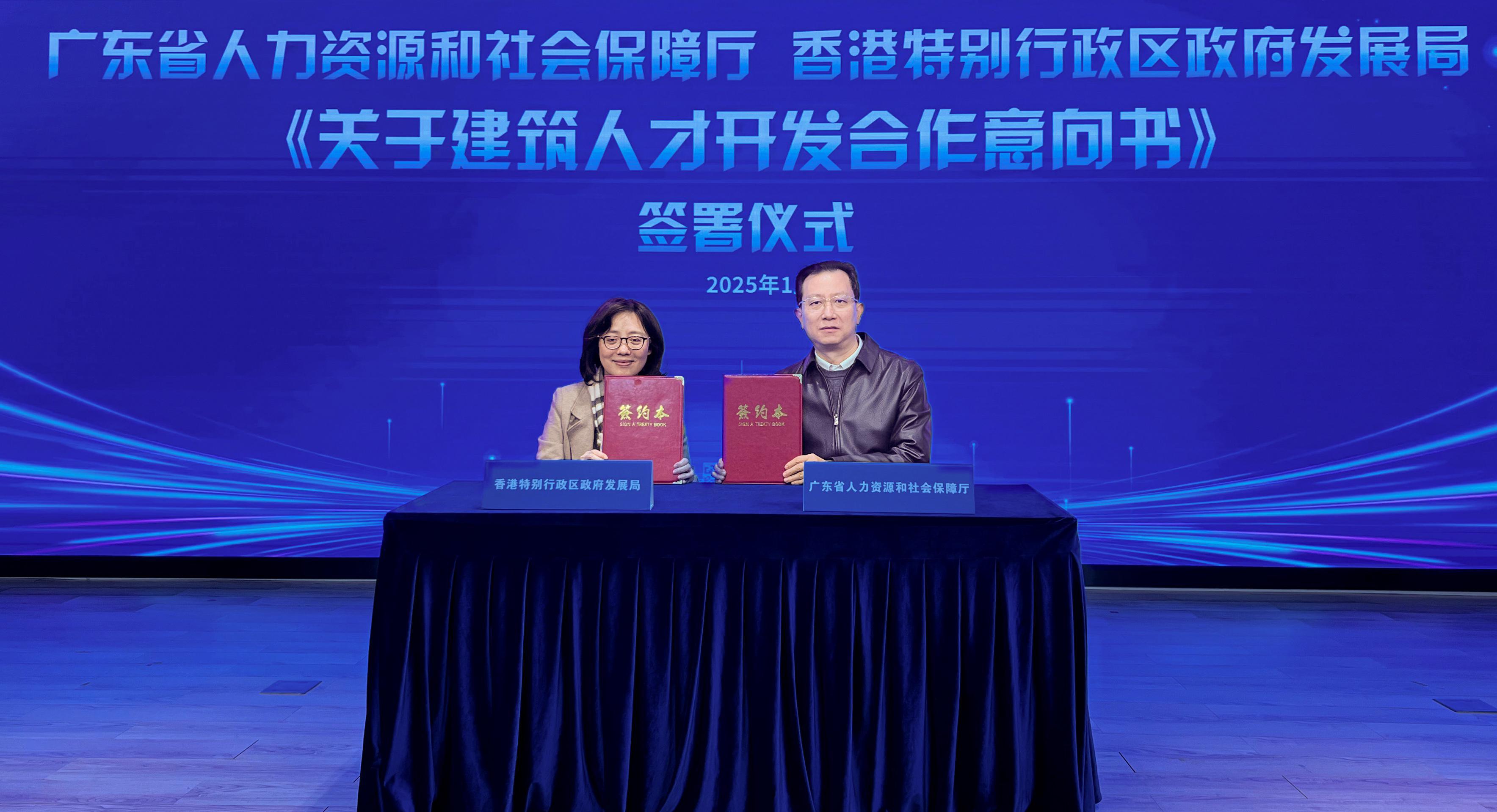 发展局局长甯汉豪今日(一月十三日)前往广州,拜访广东省住房和城乡建设厅(住建厅)及广东省人力资源和社会保障厅(人社厅),并和人社厅签署《关于建筑人才开发合作意向书》。今天的会面深化两地在建造工程领域多方面合作,助力粤港澳大湾区高质量发展。