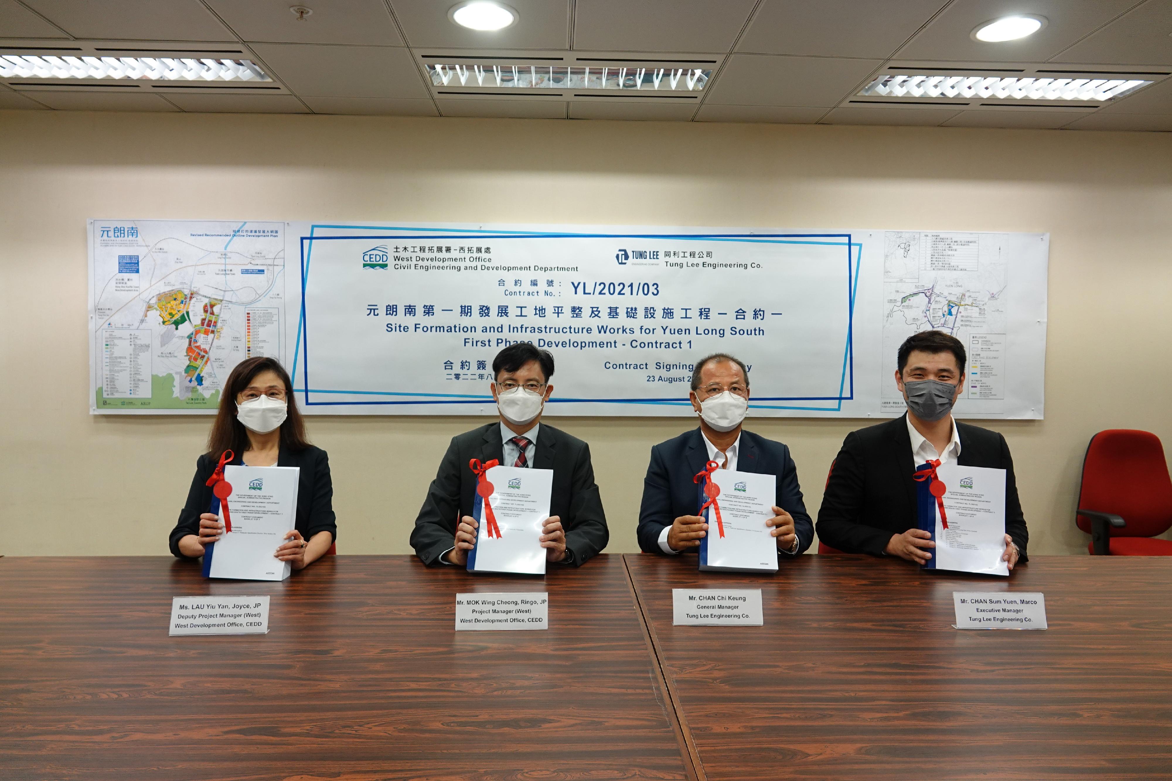 土木工程拓展署今日(八月二十三日)與同利工程公司簽署合約,以展開元朗南第一期發展工地平整及基礎設施工程,合約價值約一億三千二百萬元。