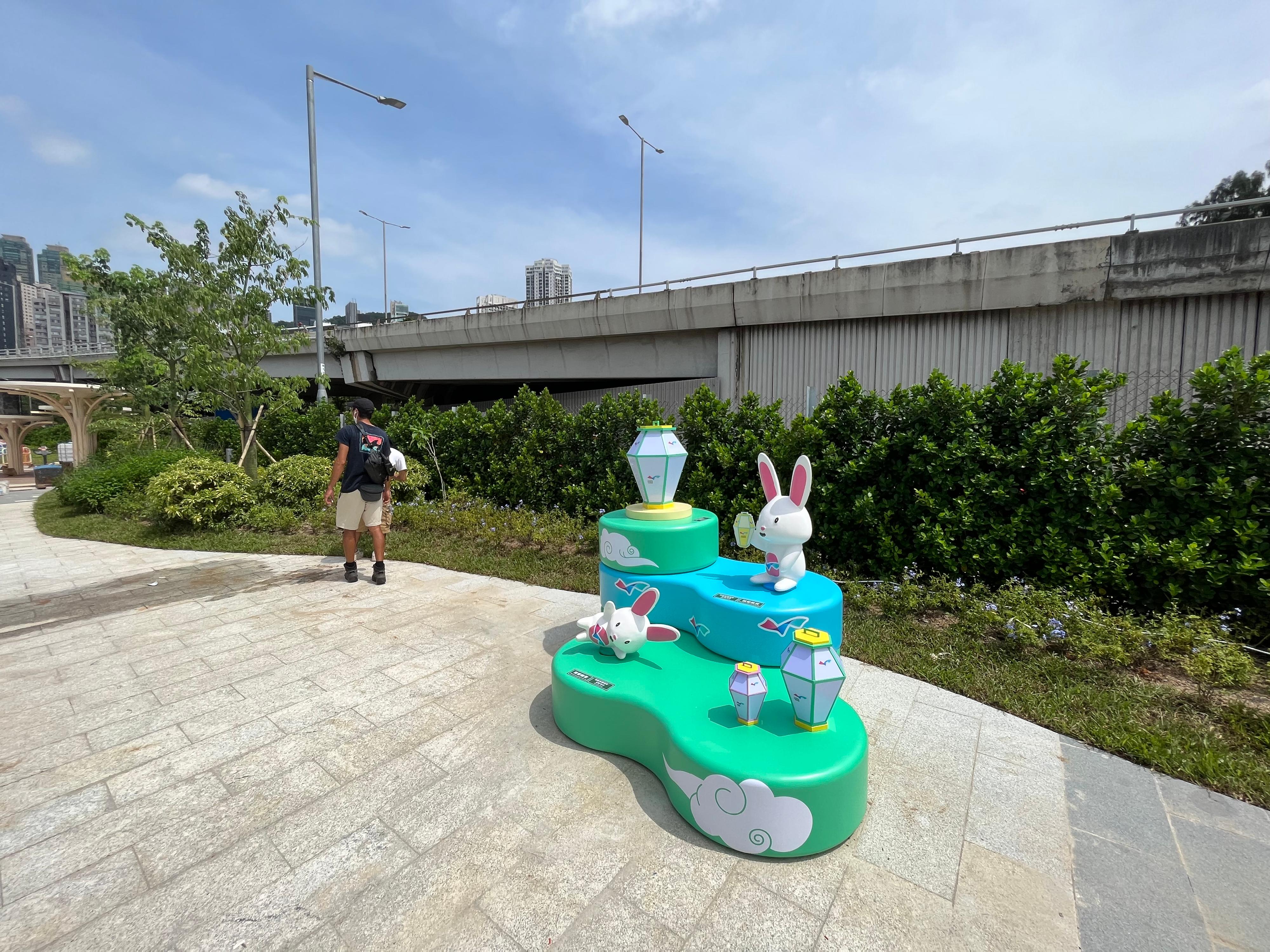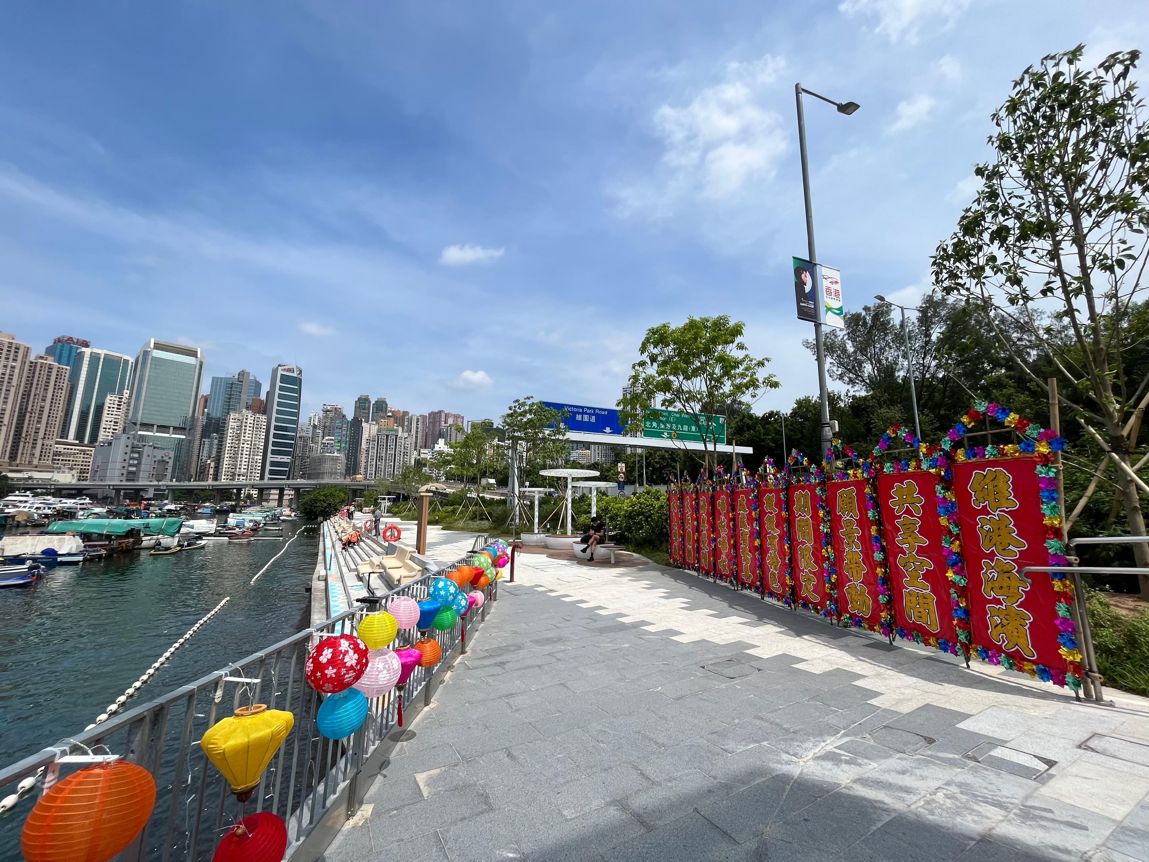 主題區由今日起展示巨型傳統花牌紮作、堤階布置和期間限定的中秋裝飾,供市民「打卡」共度佳節。