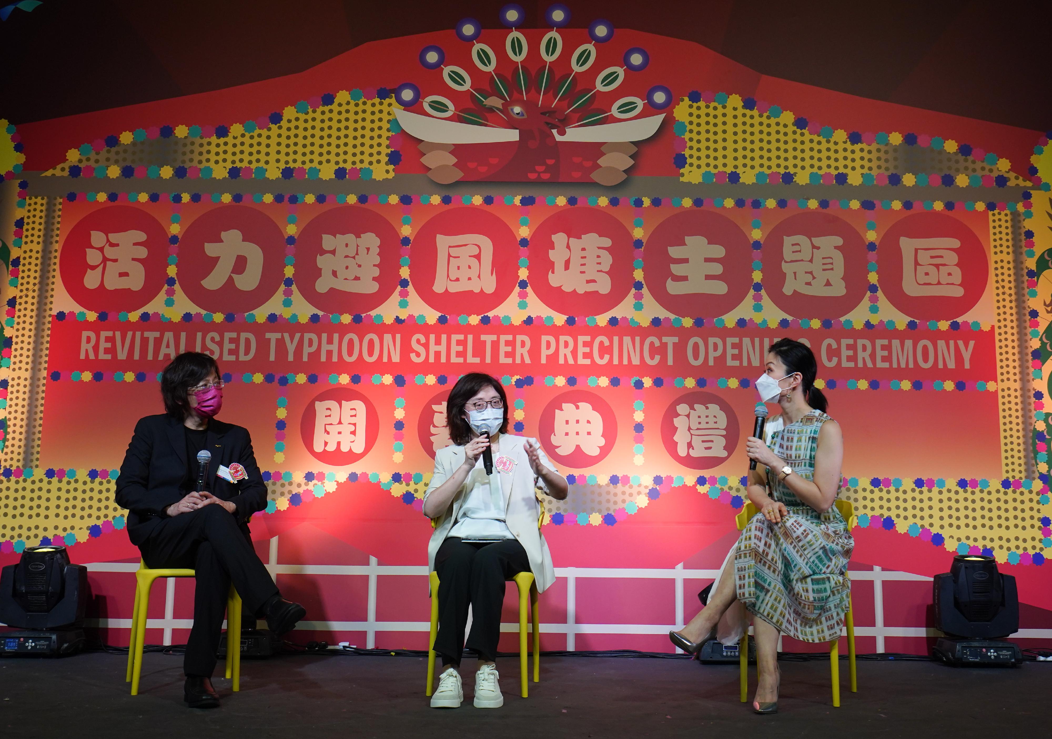 海濱事務委員會主席吳永順致辭時表示,「活力避風塘主題區」除透過「海岸堤階」為市民帶來嶄新的海濱體驗外,特別注重多方位活化銅鑼灣避風塘。透過不同部門和團體的合作,將經典的「嘩啦嘩啦」船重現讓市民體驗,並成功保留及開放水上三角天后平安堂,希望藉此保留及延續避風塘的歷史及文化,主題區的落成則體現了避風塘的新舊交融,展現銅鑼灣避風塘的不同可能性。