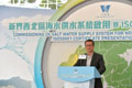 發展局局長陳茂波在主持啟用典禮時說:「我們自一九五八年開始在各區設立海水供應系統,利用海水取代食水作沖廁用途。時至今日,海水供應網絡已覆蓋大約八成本港人口,每年節省二億七千萬立方米食水,相等於大約三成的食水用量。當新界西北區海水供水系統全面運作後,每年可進一步節省約二千萬立方米食水。」